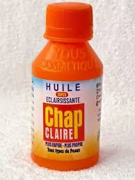 huile éclaircissante chap chap claire à Mélanger dans le lait corporelle ou dans le savon. cette huile vous fera gagner 2 ou 3 teintes.